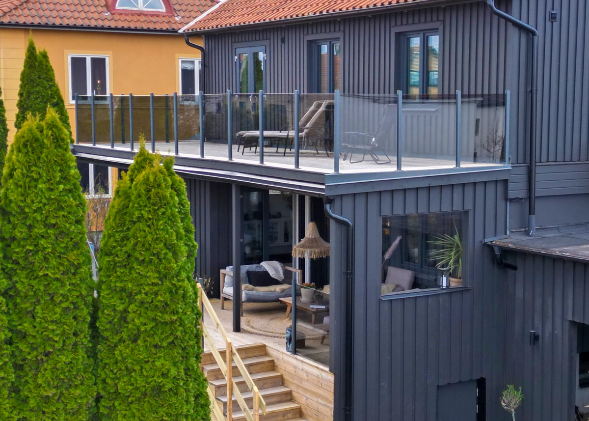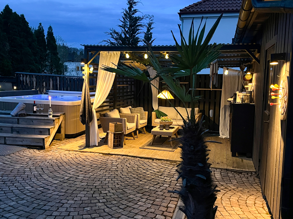 Villa Stenbock is available for rent in Halmstad. Newly renovated villa on the west side with views over the rooftops of Halmstad. Private location with high standards throughout. 290 sqm spread over 4 floors, including a carport and parking for 3-4 vehicles. 4 bedrooms, 2.5 bathrooms, office space, sun terrace, outdoor lounge, internet, laundry room, sauna, hot tub, fireplace, and large living areas. Fully furnished.